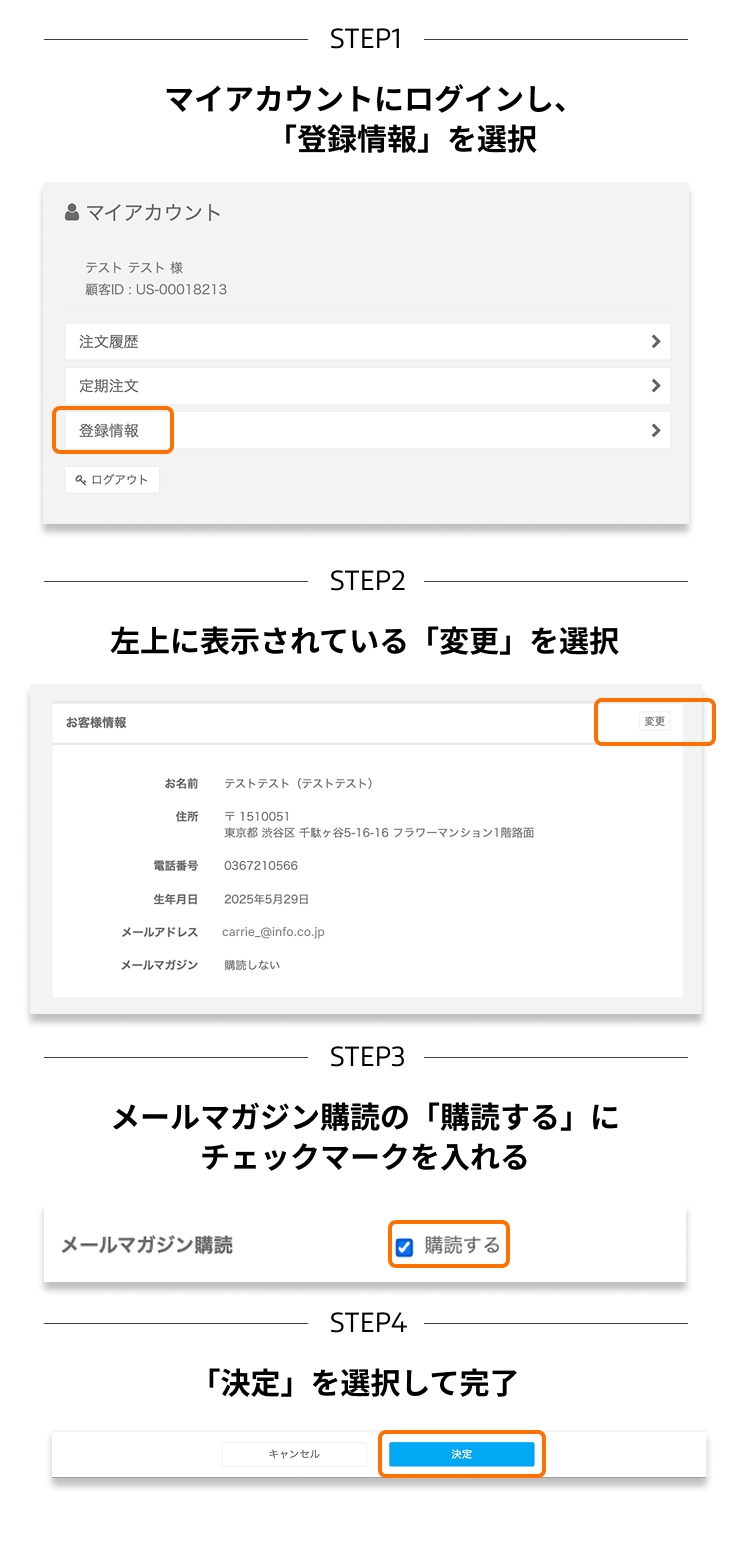 3.メールマガジン購読の「購読する」にチェックマークを入れる