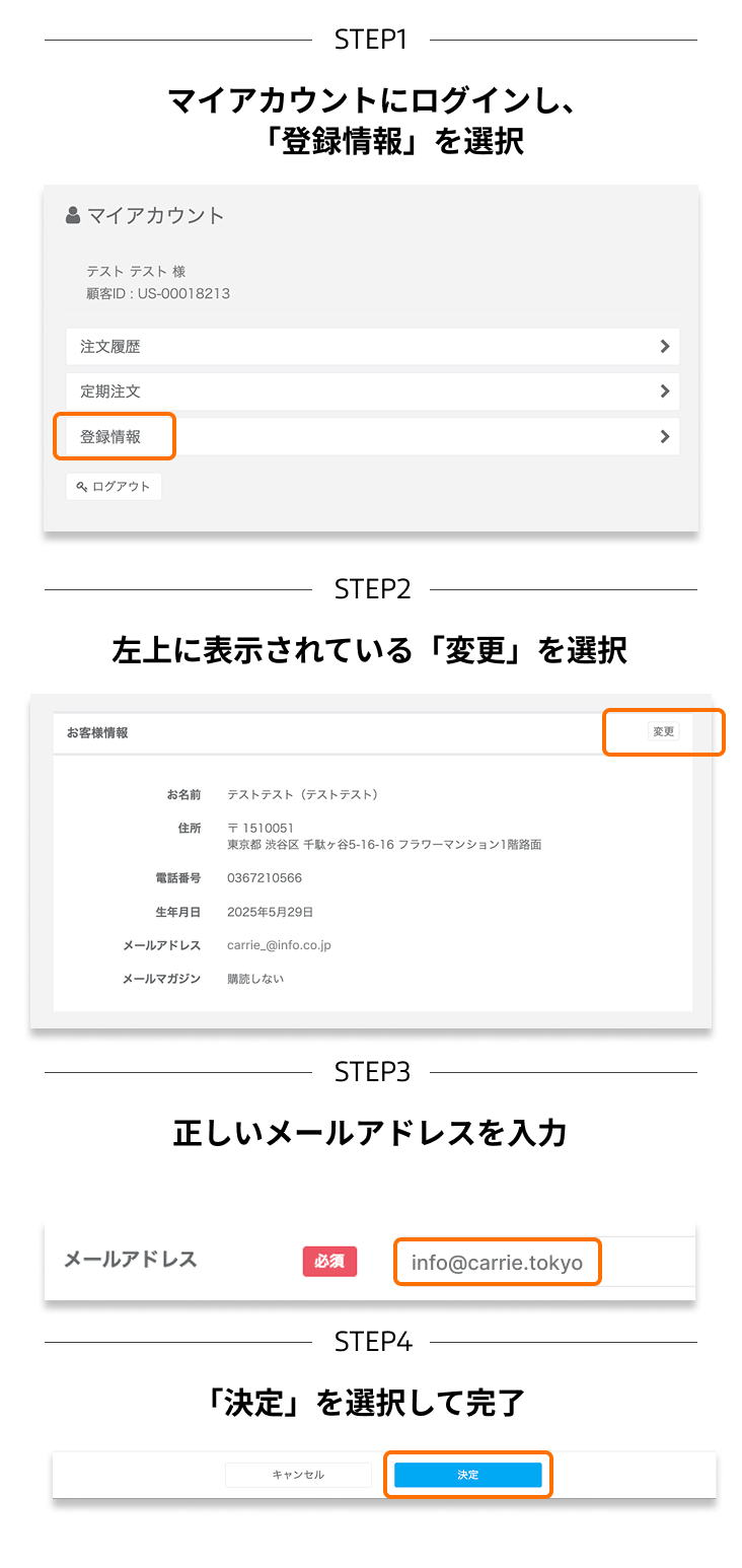 ご登録のメールアドレスに誤りがある場合、キャンペーンやイベント情報が届きません。以下の手順に沿ってご登録をいただきますようお願いいたします。